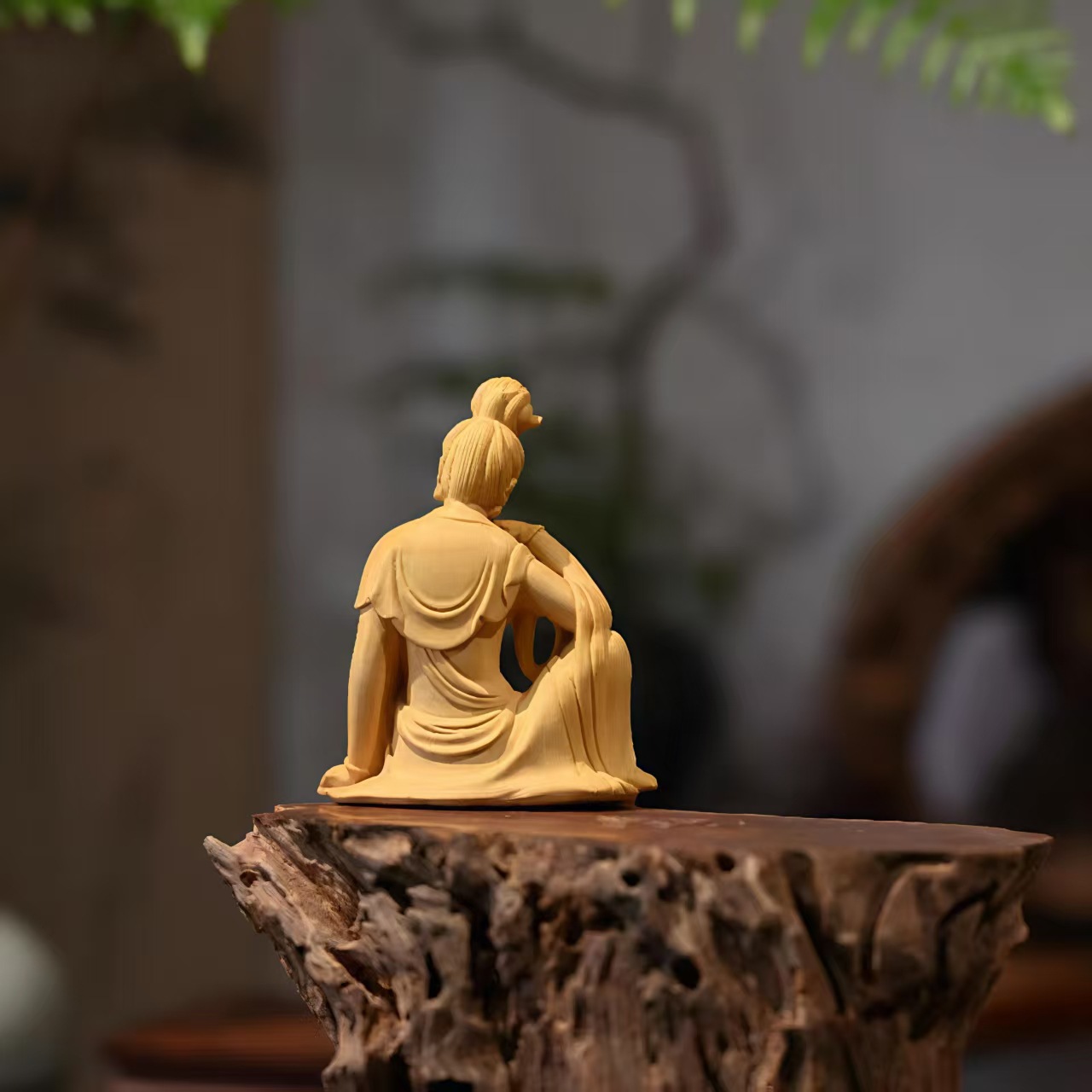 Artisanal hand-carving: Fluid cloth folds, gentle hand gestures, and smooth body curves—each piece has unique natural boxwood grain (no mass-produced uniformity).