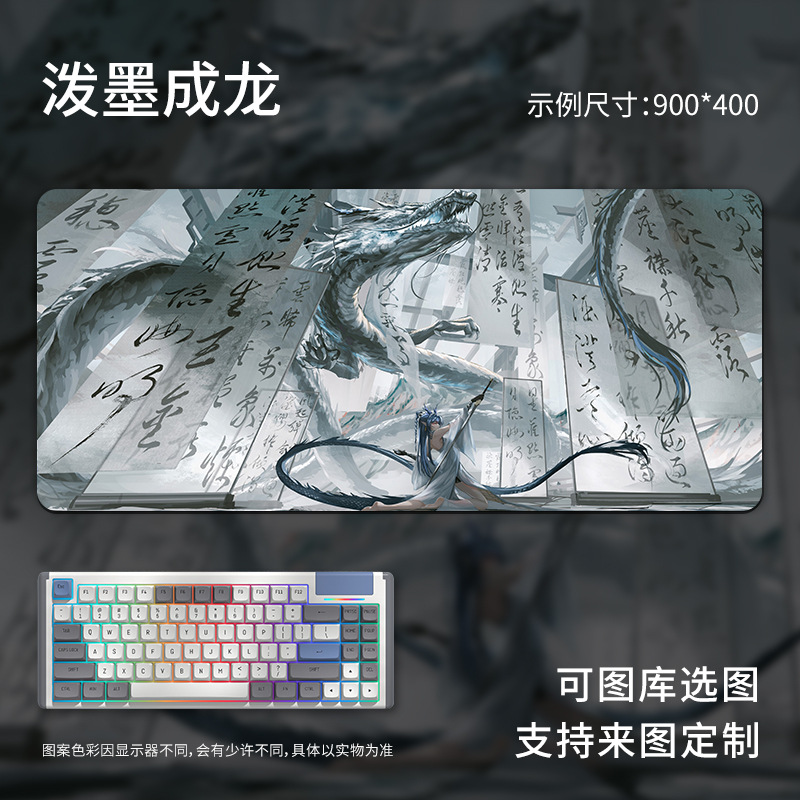 This Chinese – style mouse pad is a fantastic choice for those who love traditional Chinese aesthetics and need a spacious desk accessory. It comes in an extra – large size (example size: 900*400), providing plenty of room for your keyboard and mouse to move freely and comfortably. The surface is engineered for accurate mouse tracking, making it ideal for both intense gaming sessions and daily office tasks. The bottom has a non – slip material that keeps the pad firmly in place on your desk, preventing any unwanted sliding. The stunning “Ink – Splashing Dragon” design, with its combination of ancient Chinese calligraphy and a majestic dragon, brings a unique and elegant traditional Chinese vibe to your workspace. What’s more, you can choose from our image library or customize it with your own picture, allowing you to create a truly unique mouse pad. Please note that due to differences in monitor displays, the color of the pattern may vary slightly from the actual product, and the actual item shall prevail.