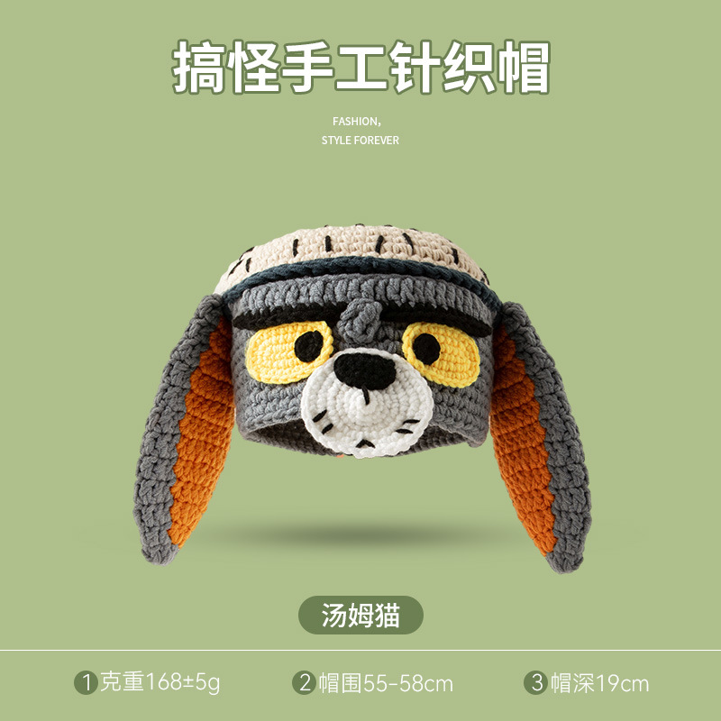 Crafted from soft, thick knit yarn, it features Tom’s signature grumpy (but cute) face: large yellow eyes, a white muzzle with a black nose, and floppy gray-orange earflaps that double as warmth-locking 护耳. The 55-58cm head circumference fit ensures comfort for most adults, while the durable fabric keeps you toasty on crisp autumn and winter days. Ideal for casual outings, cartoon-themed gatherings, or just adding a retro playful touch to your look, this beanie stands out with its nostalgic, eye-catching details.