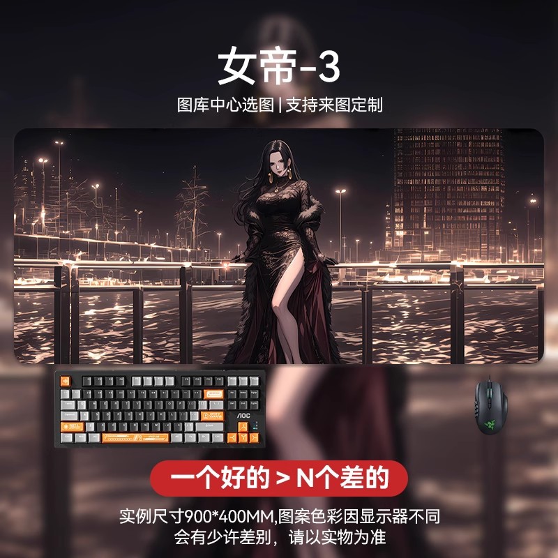 This cyber beauty anime – themed mouse pad is a top choice for One Piece fans and anyone needing a spacious desk accessory. It comes in an extra – large size (example size: 900*400MM), providing plenty of room for your keyboard and mouse to move freely and comfortably. The surface is crafted for accurate mouse tracking, making it ideal for both intense gaming sessions and daily office tasks. The bottom has a non – slip material that keeps the pad firmly in place on your desk, preventing any unwanted sliding. The dazzling urban night – scene Pirate Empress Boa Hancock design brings a chic and glamorous anime vibe to your workspace. What’s more, you can choose from our image library or customize it with your own picture, allowing you to create a truly unique mouse pad. Please note that due to differences in monitor displays, the color of the pattern may vary slightly from the actual product, and the actual item shall prevail.