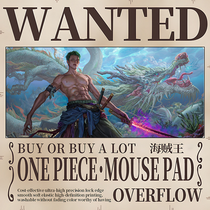 This One Piece Roronoa Zoro Wanted Poster – styled large mouse pad is an anime – themed peripheral. With thickened lock – edge technology, it is practical for both gaming and office use. Featuring high – definition printing of Zoro and the divine dragon, it has a large size that provides ample space for keyboards and mice. It is an excellent choice for One Piece fans and gamers to enhance their desktop experience.