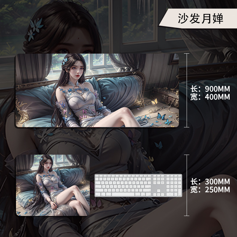Exquisite Pattern Design: Vividly presents the scene of Yue Chan sitting on the sofa, with delicate character depiction. She wears a delicate dress decorated with butterflies, has flowing long hair and a beautiful face, and her overall temperament is elegant and charming. The details of the sofa and the surrounding environment are also well – handled, creating a warm and stylish atmosphere, adding a strong artistic touch to the office desk. It can attract anime lovers and users who pursue a personalized office environment.