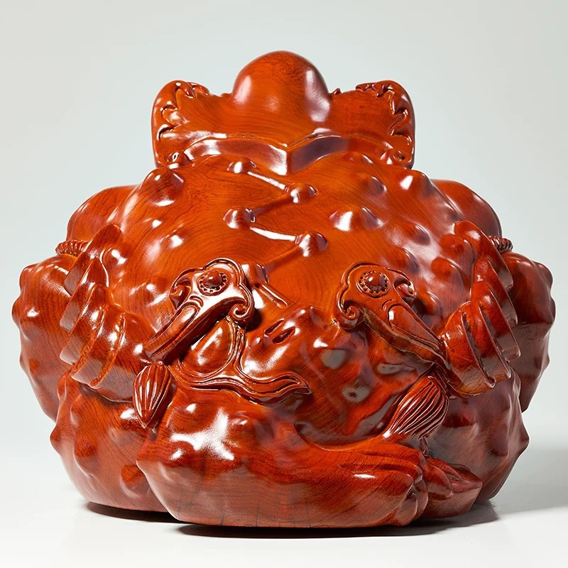 Product Name: Hand-Carved Rosewood 3-Legged Lucky Money Toad (Jin Chan) DecorMaterial: Premium solid rosewood (warm reddish-brown grain, smooth hand-polished finish)Design & Craftsmanship: