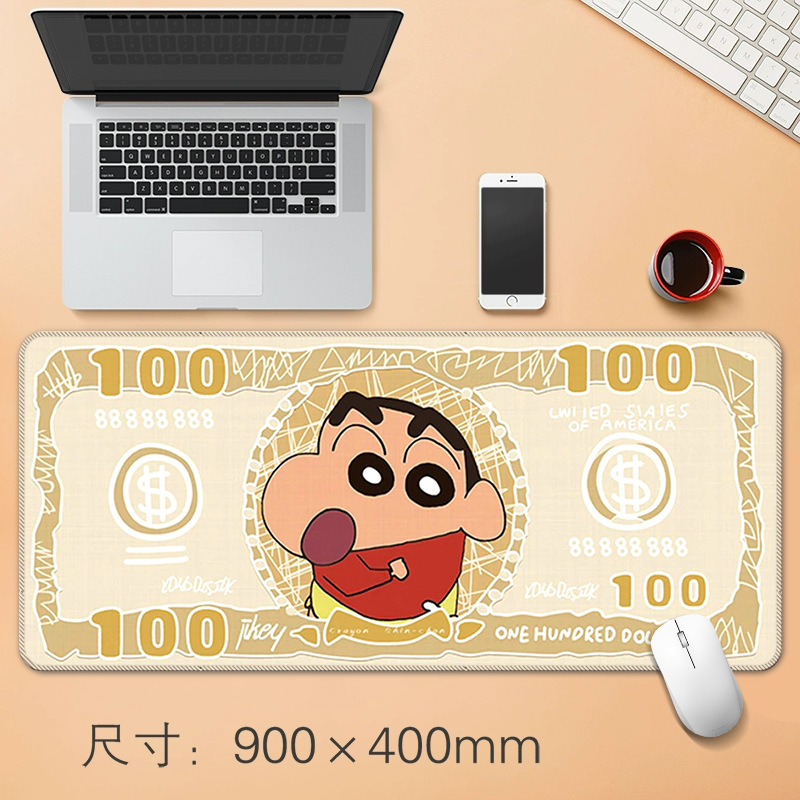 Crafted with a high-precision surface, it ensures smooth, precise mouse movements whether you’re tackling work tasks or gaming casually. The generous size (900×400mm) offers ample space for your keyboard and mouse, making it ideal for organized workdays or immersive gaming sessions. The anti-slip base keeps the pad securely in place, while the precision edging prevents fraying, ensuring long-lasting durability. The vibrant, fade-resistant print of Shin Chan in a whimsical banknote style adds a touch of fun to any setup.
