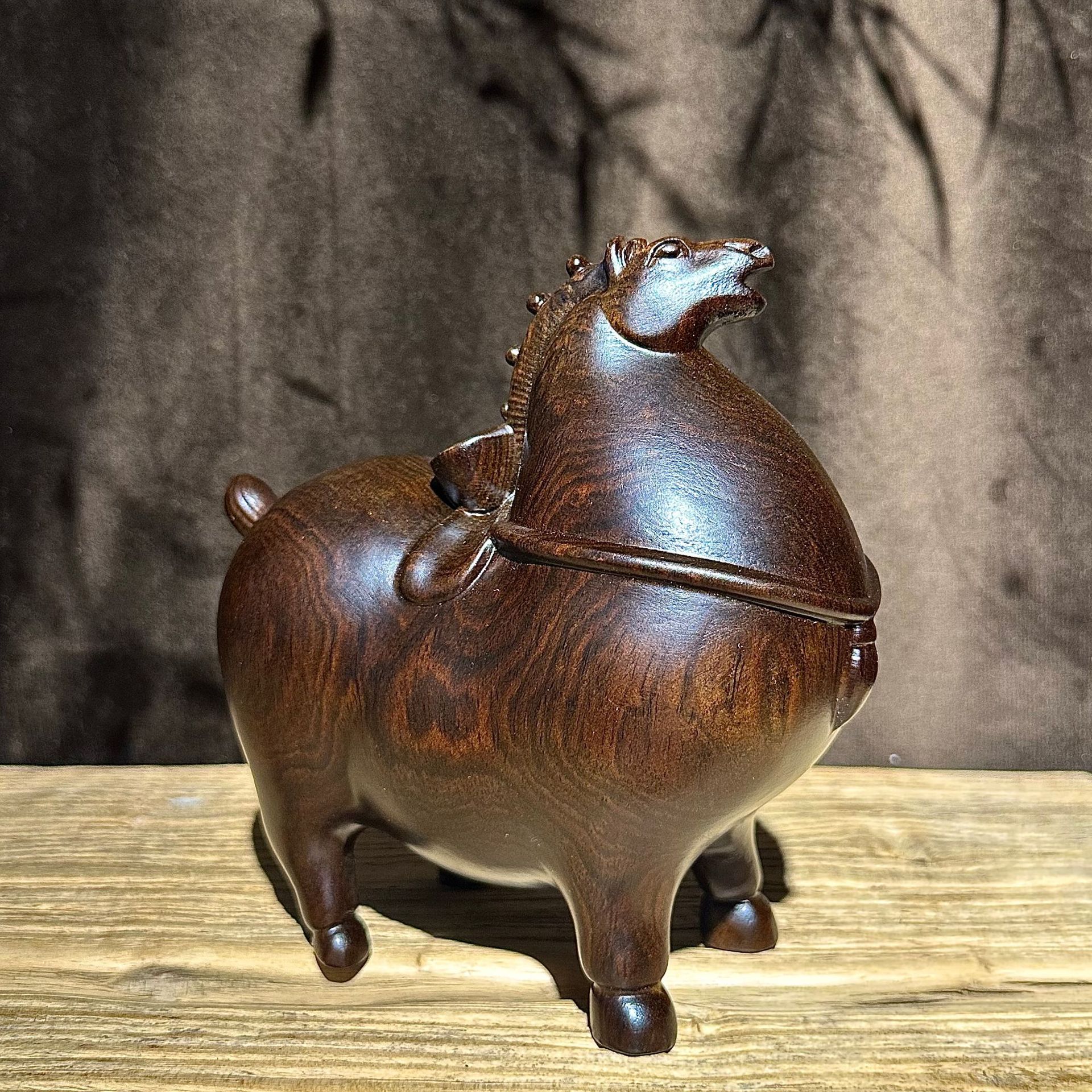 Product Name: Tang-Style Solid Wood Horse Carving FigurineMaterial: Premium solid hardwood (natural grain, smooth polished finish)Design & Craftsmanship: